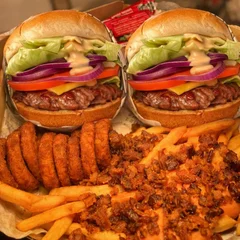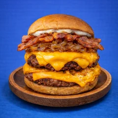 O burguer favorito da galera, na versão gigante, feito com 02 blends de 150g de carne suculenta, american cheese, bacon crocante no capricho, cebola caramelizada e finalizado com a nossa maionese de Bacon