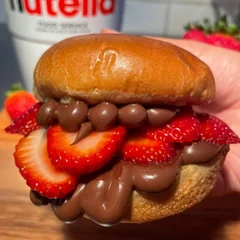 Pão brioche selado na chapa, Nutella em abundância e morangos picados. É sonho para quem ama Nutella